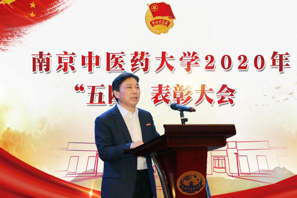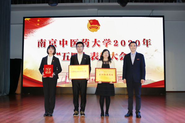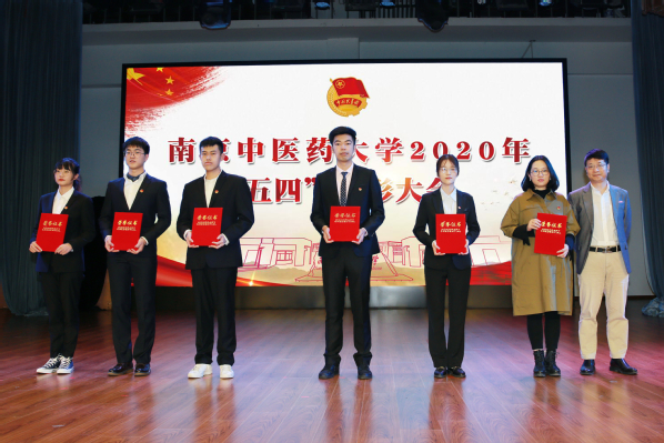 伴随着雄壮的国歌声,大会正式开始。张策华宣读《关于表彰南京中医药大学2019年度共青团工作先进集体和先进个人的决定》。程革、乔学斌和胡立宏分别为获奖集体和个人代表颁奖。