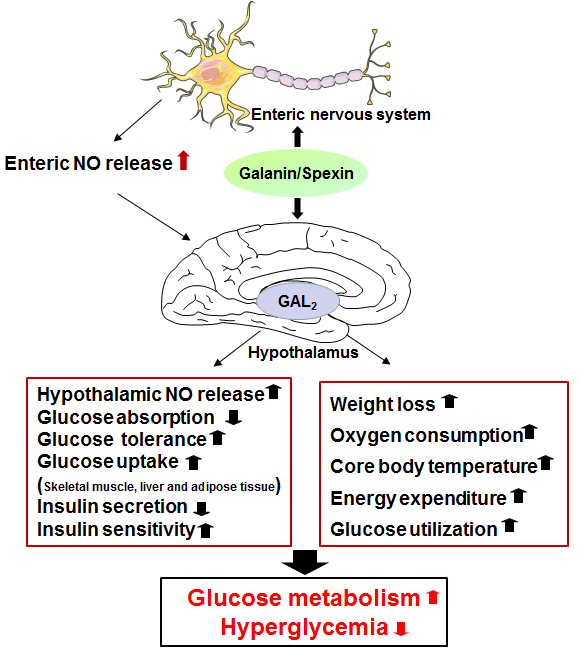 研究表明,神经肽-甘丙肽家族能够调节机体葡萄糖代谢,降低II型糖尿病胰岛素抵抗。该论文结合研究团队多年来研究以及国内外相关研究,系统评估甘丙肽家族成员对葡萄糖代谢的调节作用及机制,并提出已有研究的不足和后续有待深入研究的若干重要问题,即下丘脑甘丙肽亚型受体调控胰岛素敏感性关键机制、肥胖或II型糖尿病胰岛素抵抗与甘丙肽抵抗关系、II型糖尿病胰岛素抵抗性别差异与甘丙肽关系等。