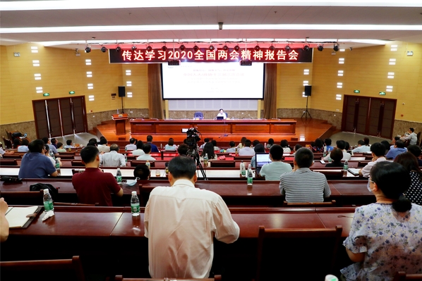 6月2日下午,我校在仙林校区丰盛楼学术报告厅召开传达学习2020全国两会精神报告会,全国政协常委、我校校长胡刚作专题报告。报告会由校党委书记程纯主持。