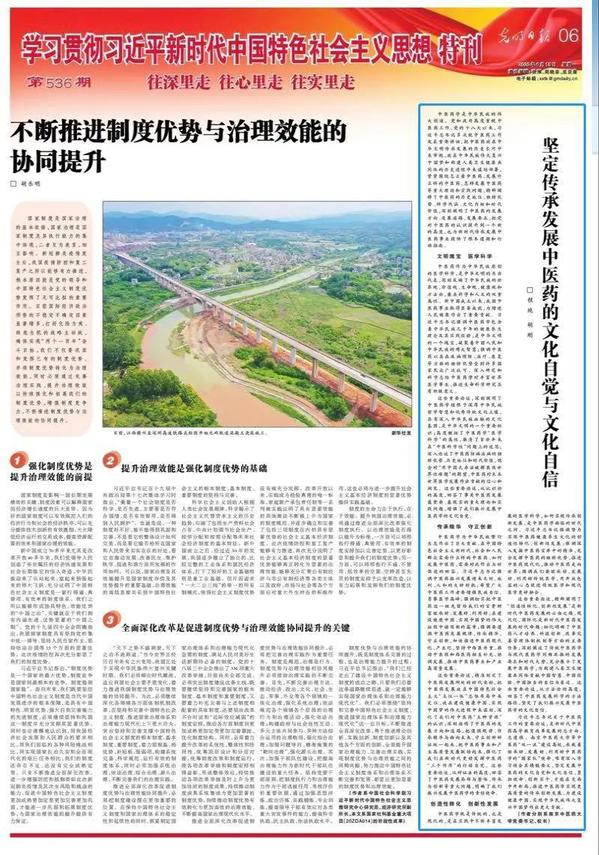 6月15日,《光明日报》6版“学习贯彻习近平新时代中国特色社会主义思想特刊”刊发我校党委书记程纯、校长胡刚署名理论文章《坚定传承发展中医药的文化自觉与文化自信》。