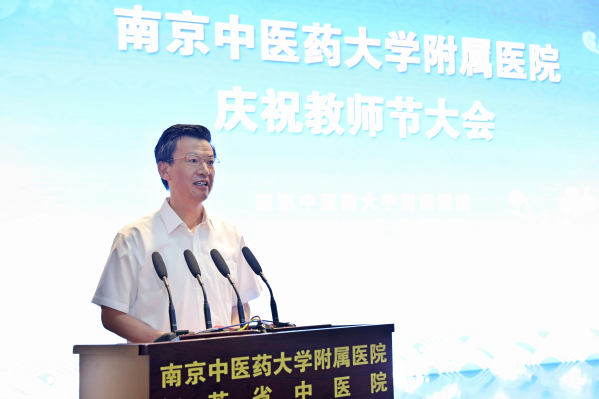 胡刚代表学校对附属医院全体教学工作者致以节日祝福,对受表彰先进集体和个人表示祝贺,对各附属医院及教学单位长期以来对学校事业发展给予的关心支持表示感谢。胡刚指出,各附属医院积极广泛参与教师节活动,越来越多的临床医务工作者加入到南中医教师队伍中,让我们倍感温馨,也倍感振奋,看到了南中医未来发展的强大动力。2020年是不平凡的一年,面对疫情严峻考验,在党和国家需要的时候,学校和各附属医院休戚与共,积极响应国家号召,广大教职医护员工在抗疫各条战线做出了南中医人应有的贡献,一手托举起“共和国的安全基石”、一手托举起立德树人的伟大重任,以实际行动诠释了“最可爱的人”“最无畏的战士”光荣称号。