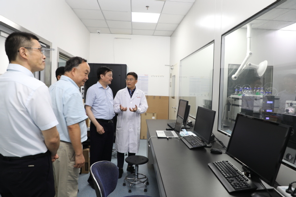最后,程纯一行来到唐仲英科技楼,看望慰问中药资源产业化过程协同创新中心主任段金廒教授和中药资源循环利用赵明教授创新团队。团队以循环经济及绿色发展理念为指导,从“物尽其用”“提质增效”及“可持续与绿色发展”三个层面,围绕中药资源开展基础研究、应用研究及前沿探索,为中药资源高效综合利用及可持续发展、解决产业行业问题提供可行路径和技术储备,取得了优异成绩。程纯对团队坚持“学术研究与国家需要结合起来,个人追求与社会进步结合起来”的核心价值观,落实新发展理念,以科技创新成果服务国家战略表示高度肯定。程纯指出,学校科技工作者要大力弘扬新时代科学家精神,要珍惜和传承业已形成的优秀团队文化,坚持顶天立地的科研策略,做到有胸怀、有格局,有远见、有眼光,有定力、有静气,紧盯中药行业产业关键科学问题和共性技术,进行协同攻关,力争在“双一流”建设中产生更多高质量高水平科研成果。程纯强调,学校的发展关键靠人才,学校将进一步加大人才引培力度,优化创新环境,为广大教师提供更多事业出色、人生出彩的机会和舞台。