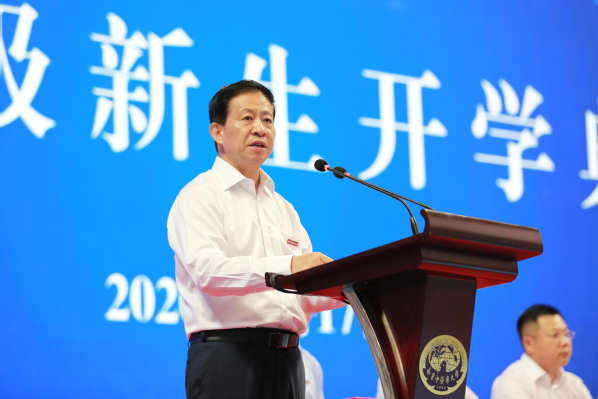 同学们:交汇点风云激荡,各种机遇和挑战交织叠加,必将成就中华民族无限生机的伟大新时代。同学们,你们是欣逢盛世的一代,你们有缘在此节点与南中医相遇,希望你们与学校一道踏准新时代节拍,不负韶华、奋力前行,共同翻过一座座“崇山峻岭”,采下一棵棵济世救人的“奇花异草”,捧回一枚枚铭刻在岁月、永不褪色的“王者荣耀”。