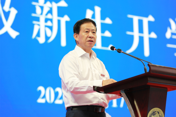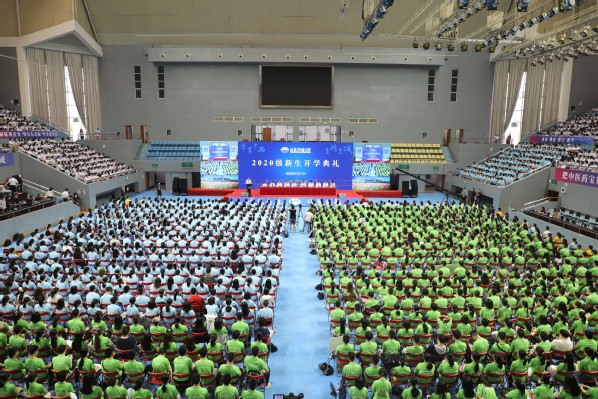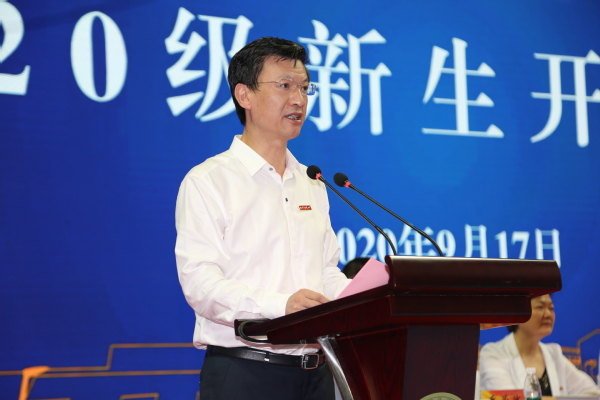 胡刚校长代表学校对全体2020级全体新生表示热烈欢迎,欢迎5058名新生成为南中医大家庭的新主人。胡刚表示,南中医这所被习近平总书记称赞为“教研实力雄厚、办学经验丰富”的“双一流”建设高校,这所名家云集、人才辈出的中国“高等中医教育的摇篮”,这所格桑绽放、药香满园、绿水青山的“最美校园”,这所秉持“学贯中西、至精至诚”办学理念的高校,定能成就每一位新生的人生新高度。