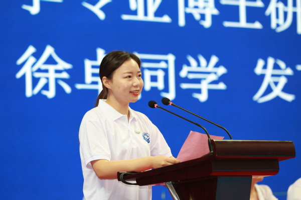 本科生代表陆曦宸、研究生代表徐卓先后发言。陆曦宸号召新生努力成长为“胸有大志、心有大我、肩有大任、行有大德”的新一代青年;徐卓回顾了她在南中医的求学岁月,表示将以饱满的状态和昂扬的斗志接受更高要求、更高层次的学术考验,努力成为国家需要的中医药创新人才。