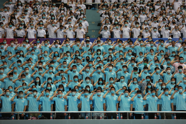 9月17日上午,南京中医药大学2020级新生开学典礼在仙林校区举行,5058名新同学,在疫情防控常态化的特殊背景下,齐聚体育馆主会场与各个分会场,共享这独具“中国幸福”的美妙时刻。开学典礼在雄壮的国歌声中拉开帷幕。校党委常委、副校长乔学斌主持开学典礼。