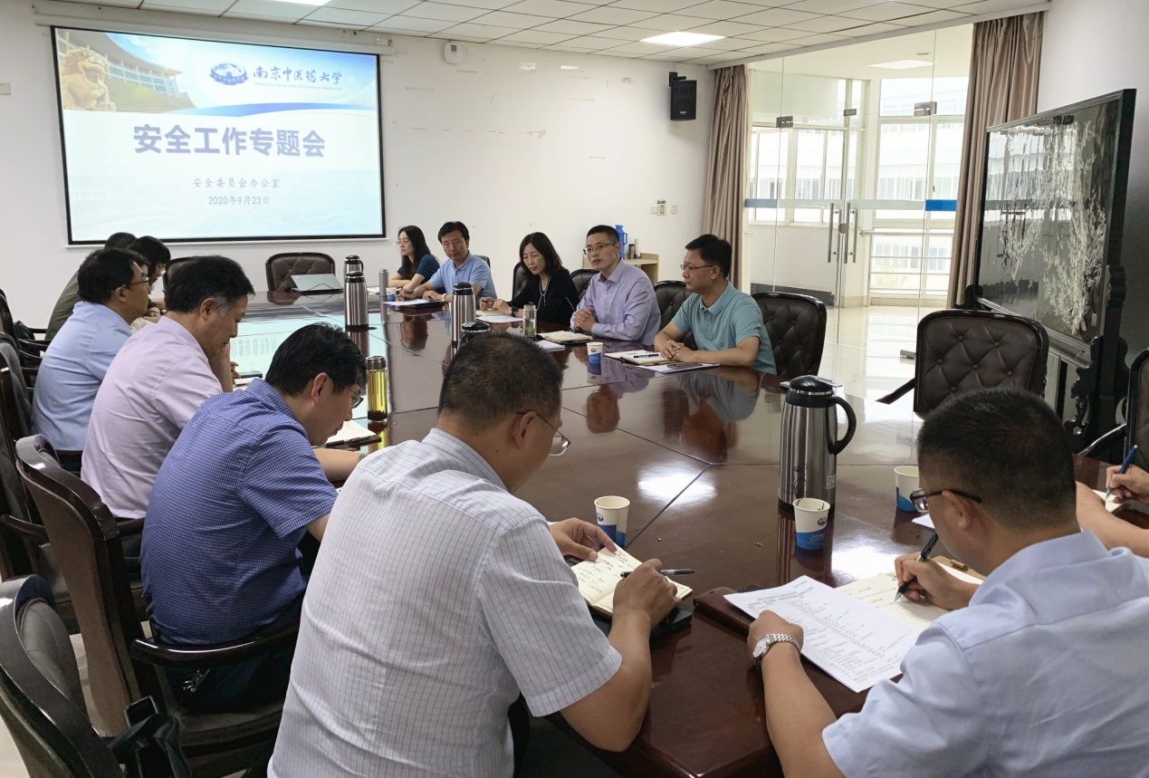 党委办公室主任殷忠勇传达了江苏省教育厅《关于印发全省教育系统安全专项整治三年行动实施方案的通知》文件精神。保卫处处长王治世传达了学校关于开展2020年国庆节前安全大检查的有关工作要求。安全委员会各专项工作组分别汇报了治安消防、学生管理、科研实验、教学运行、生产保障、网络运行和意识形态等领域安全工作情况。会议还对校园疫情防控、国庆假期安全管理等重点工作进行讨论,并对部分重点难点工作进行现场会办和督办,以彻底消除校园安全隐患,确保校园安全稳定。
