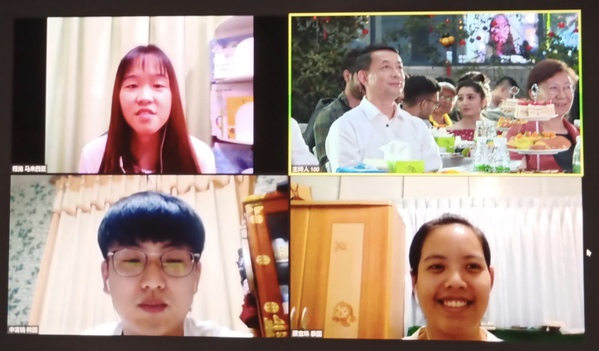 同频共振,学校心系海外学子。活动中,孙志广连线远在韩国、泰国和马来西亚的留学生,悉心询问他们的生活及学习情况,叮嘱他们要锻炼身体、按时上课,表达了学校对学生的亲切关怀。留学生们十分感动,纷纷表示虽然疫情阻隔了回校的脚步,但线上教学干货满满,请学校放心,他们一定会努力学习,期待重回校园的那一天。