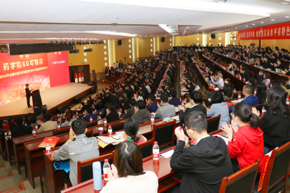 2020年10月17日上午,药学院在学校仙林校区丰盛楼学术报告厅召开大会庆祝建院60周年。安徽中医药大学校长彭代银、广州中医药大学副校长刘中秋、黑龙江中医药大学副校长杨炳友等兄弟高校校领导,我校党委书记程纯、副校长胡立宏等出席大会。兄弟院校、合作单位及附属药企代表,药学院老领导、老专家代表,校友代表,药学院教职工及学生代表等400余人参加大会。大会由药学院党委书记吴啟南主持。