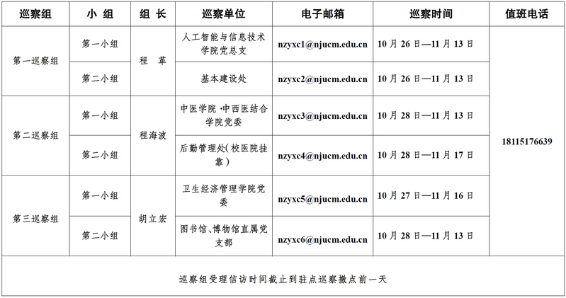 驻点巡察期间,各巡察组统一设立值班电话,分别设立电子邮箱和意见箱,接受相关信访举报。巡察主要受理反映被巡察单位领导班子及其成员、重要岗位干部执行党的政治纪律、组织纪律、廉洁纪律、群众纪律、工作纪律、生活纪律等问题的来信来电来访,其他不属于巡察受理范围的信访问题,将按规定转交有关部门处理。巡察组受理信访时间截止到驻点巡察撤点前一天。