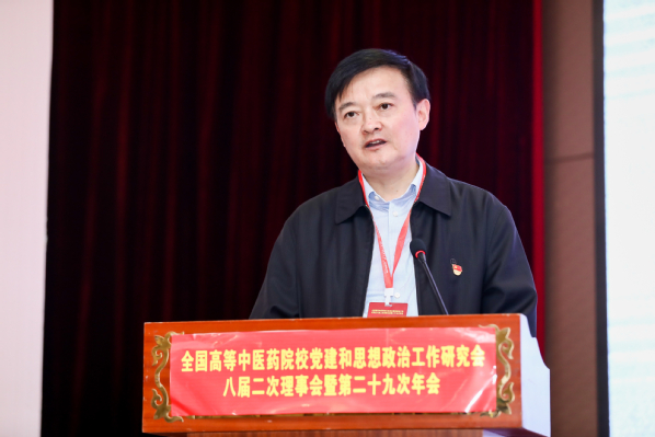 10月30日至11月1日,全国高等中医药院校党建和思想政治工作研究会八届二次理事会暨第二十九次年会在长沙召开。本次大会由湖南中医药大学承办,来自全国25个省、市、自治区的27所中医药高等院校、中医院系、民族医药学院及高职高专院校的党委领导、党建与思想政治工作者等近200人参加大会,聚焦加强党对高校工作的全面领导、全面落实立德树人根本任务、巩固拓展主题教育成果、加快构建高校思政工作体系等内容开展深入交流研讨。我校党委书记程纯出席会议并作大会主题报告。