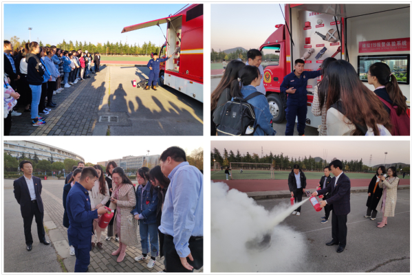 为进一步加强校园消防安全管理,做好疫情防控下校园消防安全的宣传教育,11月12日下午,我校特邀栖霞消防救援大队宣讲团吴波教员在大学生活动中心青春剧场开展消防安全知识讲座,并组织师生代表、后勤服务人员及校内各经营商户在东操场进行灭火实战技能演练。