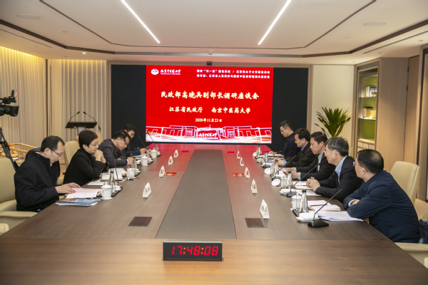 高晓兵听取汇报后表示,南京中医药大学办学历史悠久,为祖国中医药事业培养了大批人才,作出了重要贡献。她指出,江苏省民政厅和南京中医药大学合作共建养老服务管理学院适逢其时,是探路全国养老服务建设、创新养老服务人才培养模式的重要举措,集聚了面向国情、聚焦国家需求的原始创新和集成创新,是助力破解国家养老事业“未富先老、未备先老”难题的先行先试,对于中国养老服务事业发展的推动具有十分重要的意义,为国家养老服务事业发展“十四五”规划谋篇布局提供了很好的实例参考。高晓兵对学院建设提出三点希望。一要瞄准行业前沿、结合中国实际,将养老服务的理想信念和中华传统文化贯穿到学院人才培养方案之中,运用系统思维统筹做好学院的规划建设和管理运行,做到胸中有谱、心里有底,稳扎稳打、统筹推进学院建设发展。二要坚持问题导向、勇担历史重任,以攻坚克难的勇气和奋发有为的锐气,在中国高质量推进养老服务事业发展的道路上闯出一片天地、干出一番事业、造福一方百姓。三要锚定一流标准、力争行业标杆,坚定不移地把养老服务与管理学院建设作为服务国家需求的关键之举,以实实在在的举措为国家培养富有奉献热情和开创精神的高层次人才,全力打造国内一流的养老服务与管理学院,为中国养老服务事业发展争创世界先进水平作出重要贡献。