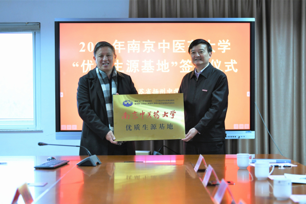 两校就今后进一步合作达成一致意见,刘晓与章轶群共同签署《南京中医药大学优质生源基地协议书》。程纯授予扬州中学“南京中医药大学优质生源基地”铜牌,赠与扬州中学《中药大辞典》和中医文化研究中心牵头主编的“中医文化研究”系列丛书,并送上扬州中学毕业学子在南中医获奖情况喜报。