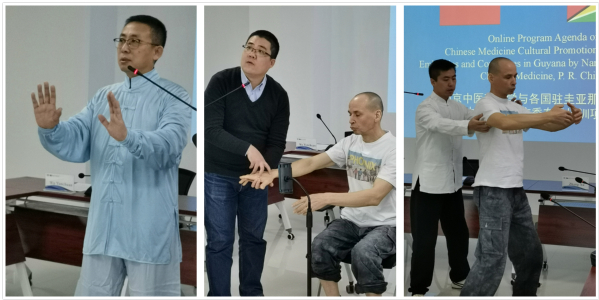 入冬以来,海外新冠疫情持续蔓延,全球抗疫形势不容乐观。为支持我省第16期援圭亚那医疗队的工作,充分发挥“中国方案”在抗击新冠肺炎疫情中的积极作用,近日,我校与中国驻圭亚那大使馆联合开展 “中医文化推广季”活动,将中医药健康理念传递到万里之外的圭亚那,为中圭两国的深入交流合作和中医药海外传播提供新路径。经外交部审批,首场活动于12月18日在线举办,多国驻圭亚那使领馆工作人员、圭亚那大学孔子学院学生、圭亚那在华留学生参加活动。我校副校长孙志广、江苏省第15期援圭亚那医疗队王栋老师和学校国际合作与交流处全体工作人员在线全程参加活动。
