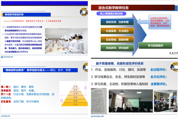 此前,继续教育学院结合专业、课程特点,遴选了中医、中药、护理、康复治疗等专业的45门核心课程作为第一批网络课程资源向全省各教学点推送。本次培训会各教学点反响良好,对各教学点开展线上线下混合式教学改革具有较强的推动作用。