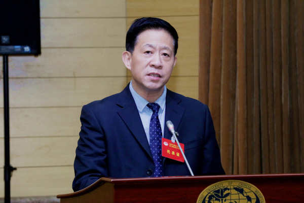 校长胡刚代表学校作题为《奋力担当 接续奋斗 开创一流中医药大学建设新局面》的工作报告。报告系统回顾了“十三五”期间学校围绕立德树人根本任务,扎实推进“双高”建设,以科学谋划培育新时期发展新动能、以锐意改革践行高质量发展新理念、以担当有为开创新事业发展新局面、以依法治校开启治理现代化新阶段,取得超额完成“十三五”规划目标任务、实现跨越发展的显著成绩。2020年,在突如其来的新冠肺炎疫情背景下,全校上下众志成城、勇担重任,一手抓疫情防控、一手抓内涵建设:一方面充分发挥专业特色优势,通过联防、临床、科研、产业多线联动,为举国战“疫”贡献南中医良“方”;一方面通过坚持创新、协调、绿色、开放、共享发展,为推动学校事业高质量发展培育动能、激发活力、提升品质、拓展格局并积极贡献发展成果,通过全校上下共同努力实现疫情防控和内涵建设“双胜利”。胡刚强调,“十三五”圆满收官,五年发展历程令人难忘、成就催人奋进,2021是“十四五”开局之年、开启现代化新征程的起步之年,希望全校上下勠力同心、奋勇担当,立足新发展阶段、贯彻新发展理念、构建新发展格局,扎实推进“双高”建设,以高质量发展、可持续发展的过硬成果开好局、起好步,以优异成绩迎接建党100周年华诞。