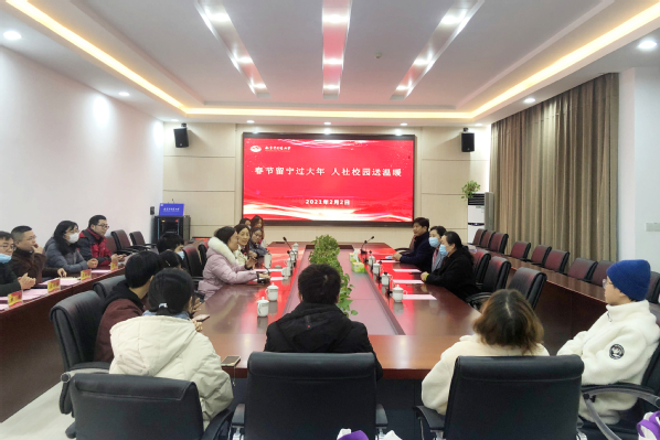 2月2日,南京市人力资源和社会保障局一级调研员马书婷一行来校开展“春节留宁过大年,人社校园送温暖”活动,慰问我校寒假留校大学生。