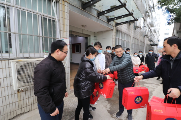 在农历牛年新春佳节来临之际,2月11日大年三十上午,校长胡刚,副校长乔学斌、曾莉带着全体校领导的祝福看望慰问春节期间仍坚守在工作一线的教职员工和留校学生,给他们送去新年的祝福和节日的问候,祝大家牛年幸福吉祥。