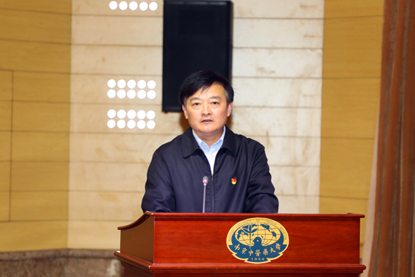 校党委书记程纯作题为《发挥引领保障作用,为学校“双一流”建设再出发开好局、起好步》的讲话。他总结了过去一年学校从严落实政治责任,在全面从严治党工作中取得的成绩。他指出,对照中央和省委的要求,对照国家“双一流”和江苏高水平大学的建设目标,学校全面从严治党工作还存在一定差距。2021年是实施“十四五”规划、开启全面建设社会主义现代化国家新征程的第一年,也是中国共产党成立100周年,在这个学校国家“双一流”和江苏高水平大学建设新起点再出发的关键之年,落实全面从严治党主体责任任重而道远。