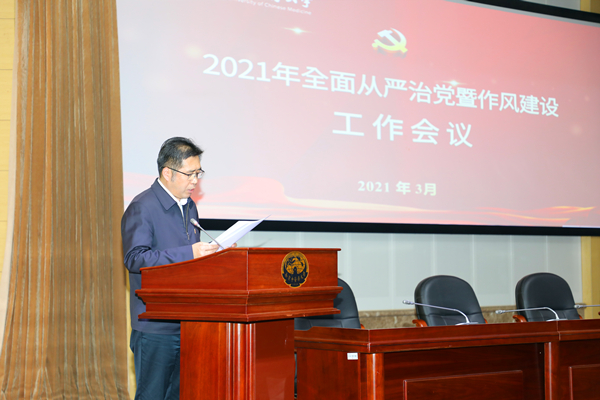 3月26日下午,学校2021年全面从严治党暨作风建设工作会议在丰盛楼报告厅召开。全体在宁校领导,校党委委员、纪委委员,全体中层干部,二级党组织纪检委员,机关副科级以上干部参加会议。会议由校党委副书记程革主持。