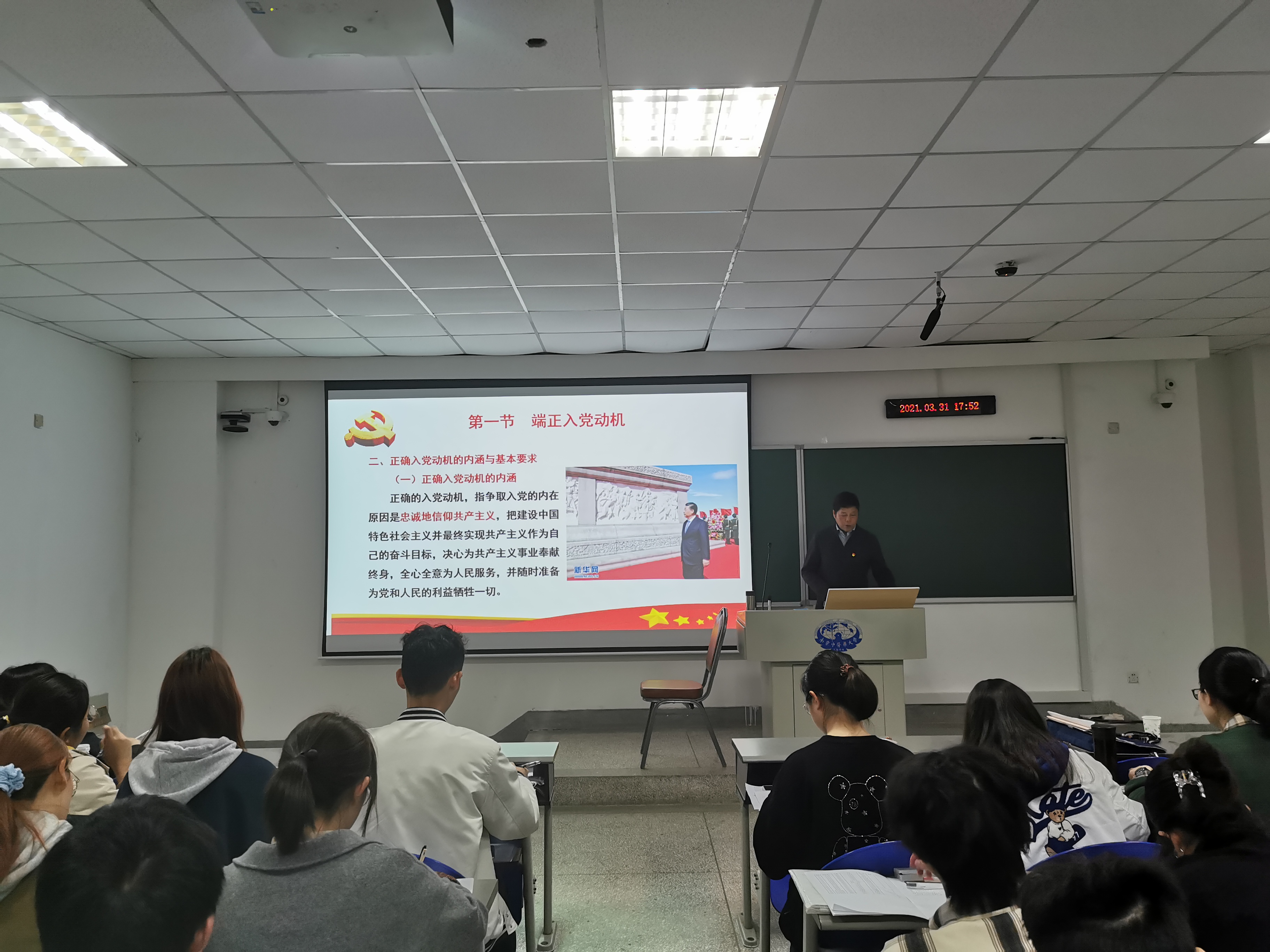 吴啟南做培训班动员讲话,他对学员提出三点要求:一是要坚定理想信念、加强政治理论学习,在思想上与党中央保持高度一致。二是要努力学习专业知识,努力提高自身的综合素质。三从自身要求做起,严于律己,从身边小事做起,真正在同学中树立标杆。最后他对学员们提出殷切期望,在建党百年之际,希望学员通过党校培训,认真学习党的基础知识,努力提高政治修养,不断增强政治觉悟,争取早日向党组织靠拢,成为一名思想上、行动上都合格的共产党员。