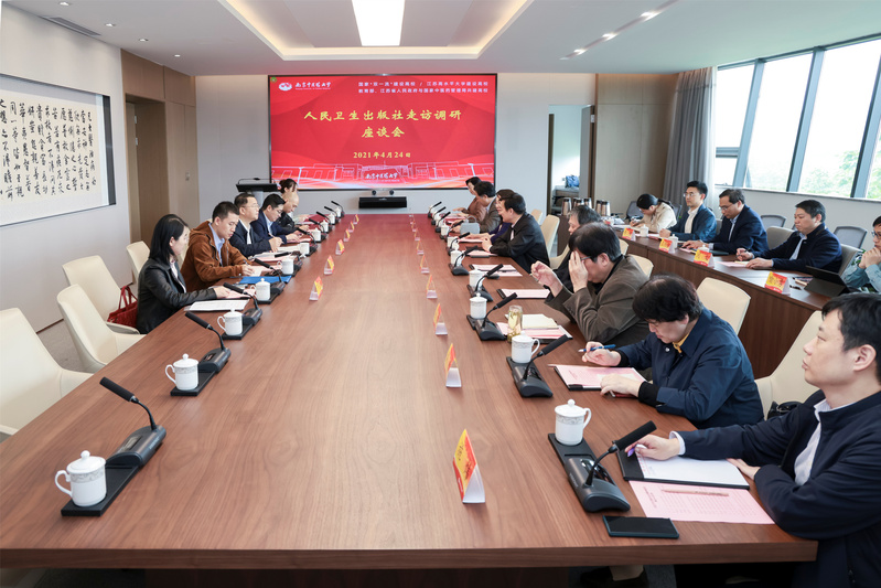 程纯代表学校致辞,对杜贤总编辑一行的到来表示热烈欢迎,对人民卫生出版社长期以来对我校教材建设工作的支持表示感谢。他简要介绍了近年来学校深入推进国家“双一流”和江苏高水平大学建设的基本情况和取得的突出成绩,并表示,希望双方以此次调研为契机,进一步发挥好各自优势,加深了解、加强合作。