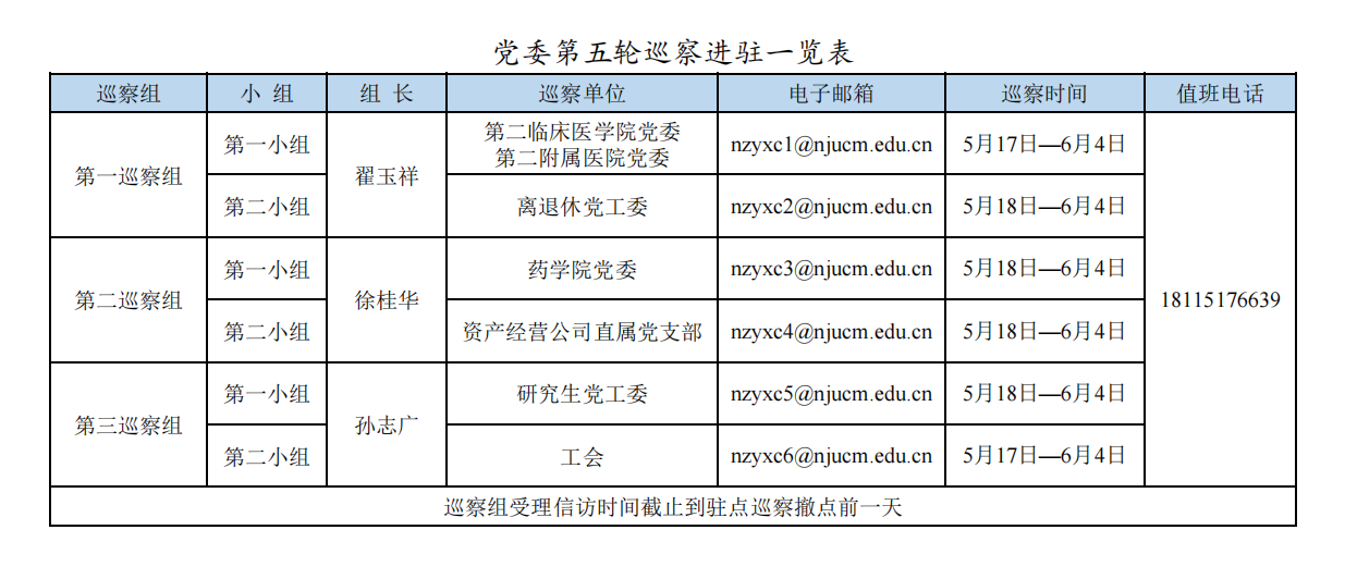 根据学校党委统一部署,截至5月18日,第五轮巡察完成对工会,离退休党工委,研究生党工委,药学院党委,第二临床医学院党委、第二附属医院党委,资产经营公司直属党支部6家单位进驻。5月17日至18日,各巡察组分别召开巡察工作动员会,传达中央和省委巡视巡察工作最新精神,明确巡察主要任务、工作安排和纪律规定。