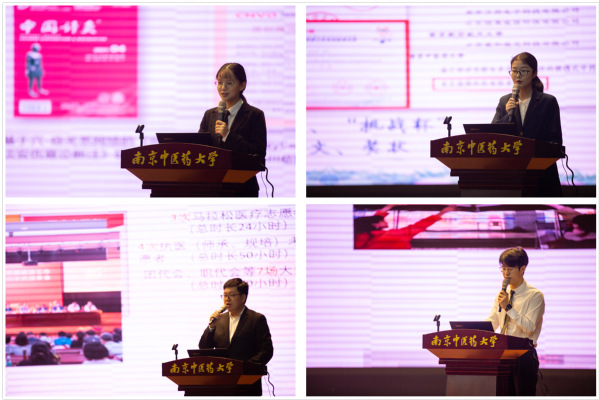 候选人们生动讲述了他们的青春故事,展示大学期间在学术科研、创新创业、公益实践、文体竞技等方面取得的优异成绩以及在校园内外积极向上的影响力,引起现场评委及观众的热烈掌声。他们中有热心公益、饮水思源的“南京好人”;有继承传统文化、致力于弘扬国粹的青年先行者;有踔厉奋发,力耕不欺,斩获中国大学生医学技术技能大赛护理学专业赛道全国总冠军的“男”丁格尔;有手握金话筒,讲好南中医故事,致力于打造南中医名片的青年先锋。他们用自己的实际行动展现着青春和智慧,书写着荣誉和责任,传递着爱心和希望,充分体现了杏林学子的优良学风,彰显了南中医人追求卓越的担当。