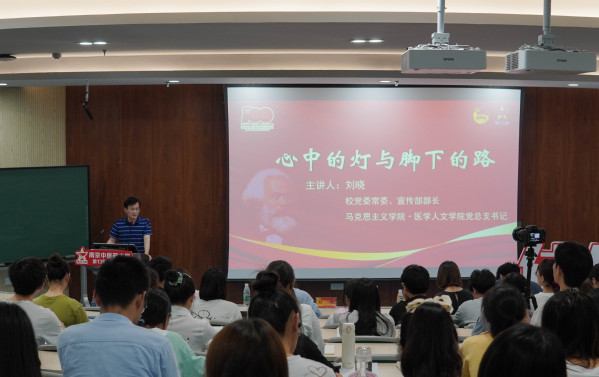 刘晓为第13期“精英班”学员开启学习之旅第一讲“心中的灯与脚下的路”。一个半小时的课程,刘晓围绕点亮理想信念这盏“心中明灯”,以有力实践走好脚下道路,结合大学生“四史”学习,娓娓而谈、春风化雨,为精英班学员送上丰盛的精神食粮。