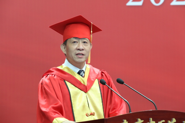 胡刚校长带领全体毕业生一同忆往昔、看今朝、话未来,用充满家国情怀和时代豪情的话语为毕业生们壮行。“你怎么样,中国便怎么样;你是什么,中国便是什么”“新时代的大学毕业生,不能因为困难和不确定性而‘躺平’,须以‘敢教日月换新天’的豪迈,收获披荆斩棘的成就!”