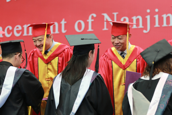 校领导和学位评定委员会委员为毕业生代表颁发学位证书并授予学位