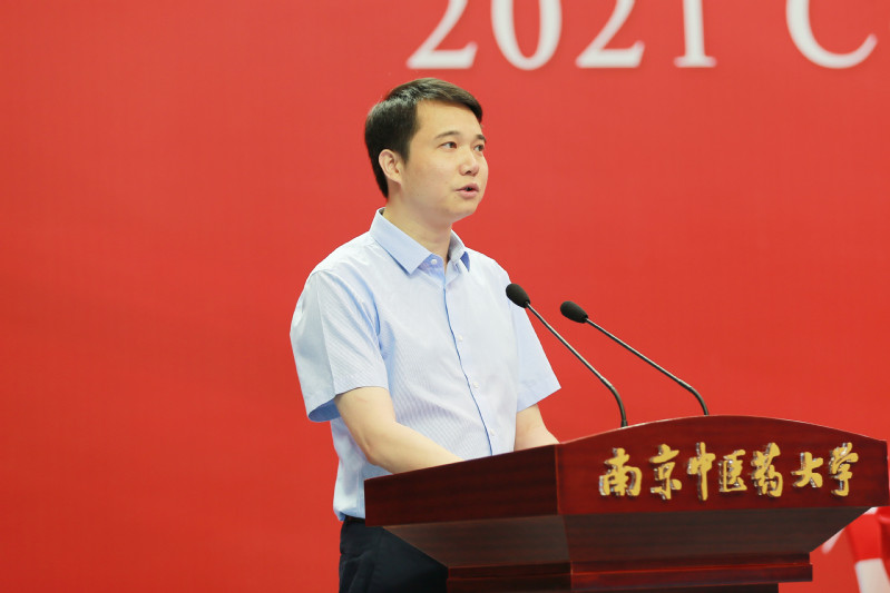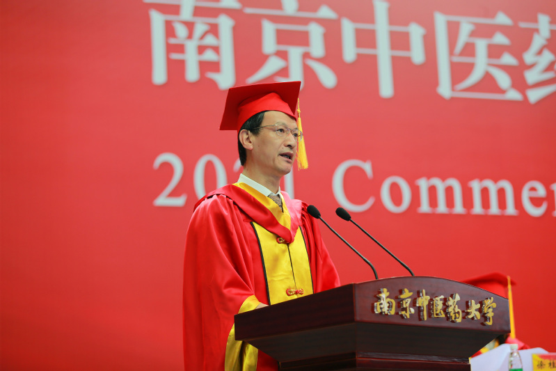 副校长方祝元宣读《南京中医药大学关于授予2021届毕业生学士、硕士、博士学位的决定》