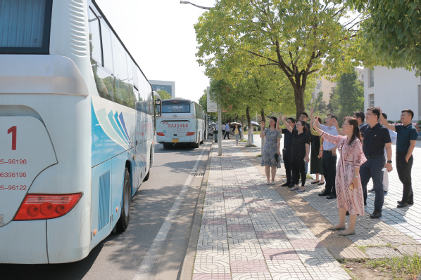 为方便毕业生离校,学校安排了“离校送站专车”送别毕业生。6月21日上午,志愿者们来到大学生活动中心北广场发车点,搭好遮阳棚,备好矿泉水,帮助毕业生学长学姐搬运行李。校学生工作领导小组成员、各学院党政领导和毕业班辅导员来到发车点,为毕业生送行。启程之时,老师们为毕业生送上最诚挚的关怀与祝福,叮嘱毕业生常回母校看看;毕业生们满怀着不舍与老师们依依惜别,带着母校的祝福,扬帆新征程。