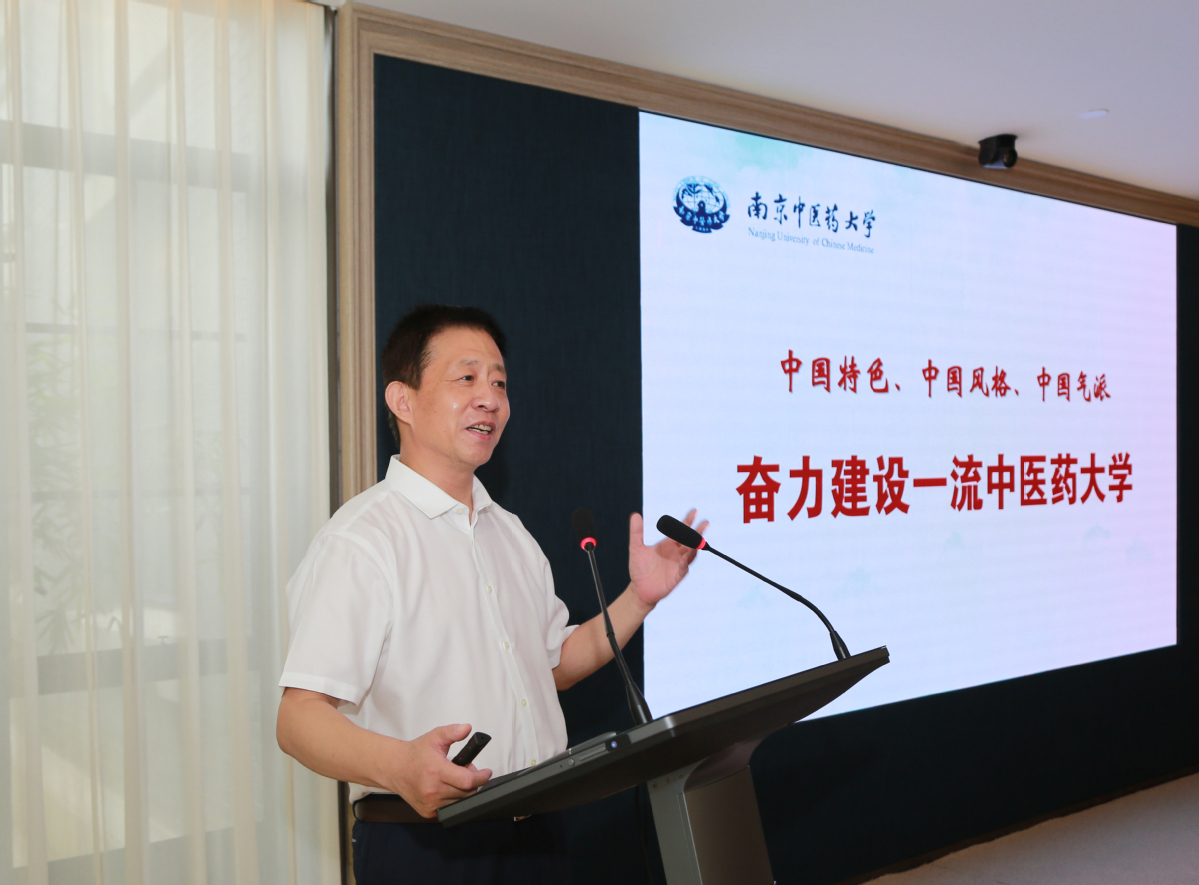 校长胡刚从建设基础、任务目标以及预期成效三方面对建设方案进行了介绍。胡刚回顾了学校在“十三五”期间取得的阶段性建设成效,提出立足新发展阶段,学校将贯彻新发展理念,以习近平总书记对中医药工作的重要指示精神为引领,坚守为党育人为国育才,打造“有理想信念,有道德情操,有扎实学识,有仁爱之心”的一流师资队伍,在科技自立自强中展现新作为,以优秀中华文化塑造苍生大医,推进中医药传播和高水平开放,助力“强富美高”现代化建设,奋力建设中国特色、中国风格、中国气派的一流中医药大学。