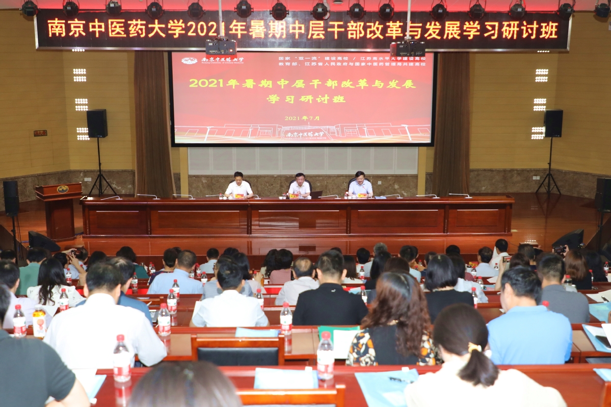 7月4日至5日,南京中医药大学2021年暑期中层干部改革与发展学习研讨班在仙林校区举行。全体校领导,全体中层干部,学科、专业负责人,高层次人才,全体正科职干部,民主党派负责人以及在宁附属医院领导班子成员等350余人参加培训。