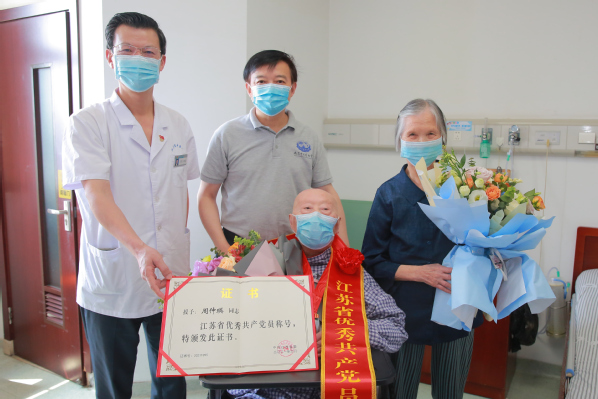 程纯一行专程看望了今年受表彰的最年长的江苏省优秀共产党员,国医大师、我校原校长周仲瑛教授。程纯紧紧握着周仲瑛教授的手表示祝贺,并送上鲜花表达问候,向他对中医药事业所作贡献致以衷心的感谢和崇高的敬意。