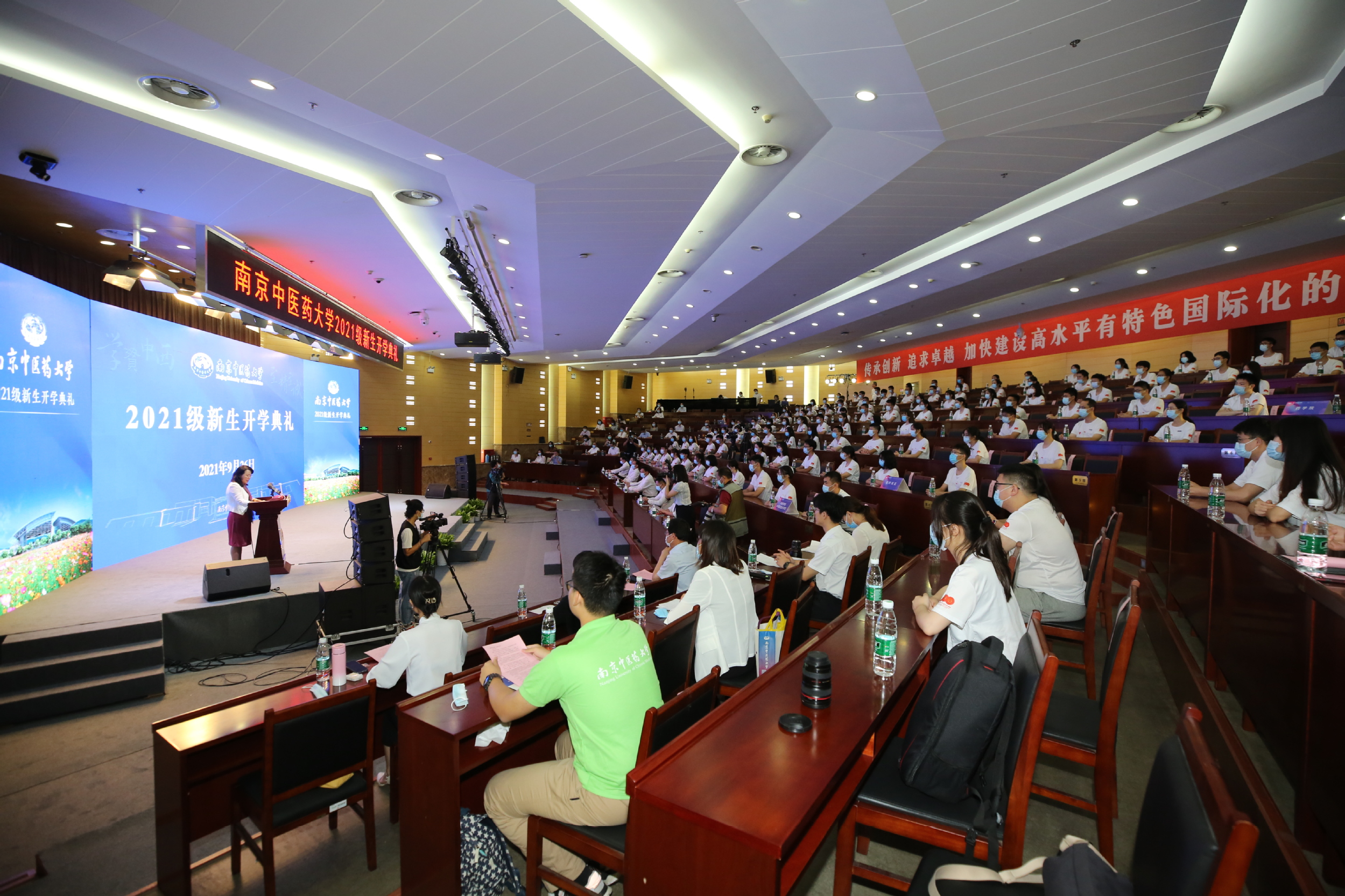 9月26日上午,南京中医药大学2021级新生开学典礼在仙林校区举行。根据疫情防控要求,本次开学典礼采用线下和线上相结合的方式举行。百余名新生代表、全体在宁校领导、校学生工作领导小组成员、新生辅导员代表在丰盛楼学术报告厅主会场参加典礼,典礼通过直播平台同步直播,南京、泰州两地三校区5000余名新生及家长亲友相聚“云端”,一同“云上”观礼。开学典礼由副校长徐桂华主持。