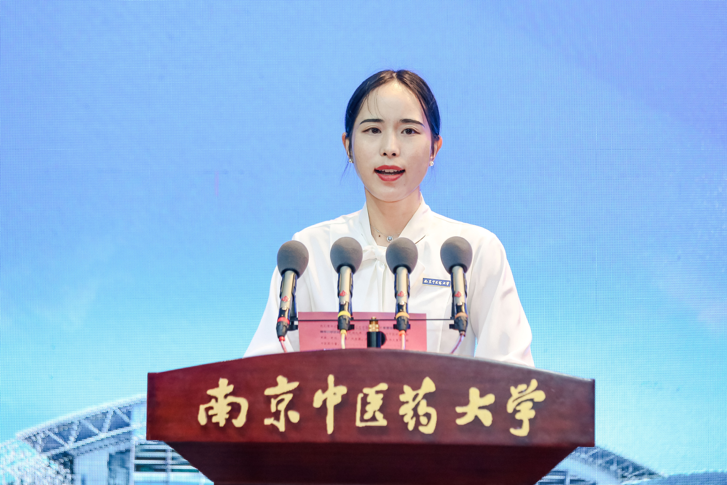 本科生代表朱俊宇、研究生代表李余佳先后发言。作为一名准大学生,朱俊宇在暑期也加入到“抗疫”志愿者的行列,在“抗疫”一线收到录取通知书。他表示,要追随前辈的脚步,用飞扬的青春、饱满的热情续写中医药事业守正创新的历史华章,为人类健康贡献青春力量。李余佳同学回顾了她在南中医的7年求学岁月,表示将继续脚踏实地,潜心科研,完成对自我思想的重塑,升华对中医药的认识,秉持“自信、敬业”的校训,在弘扬中医药文化的道路上走得更远。