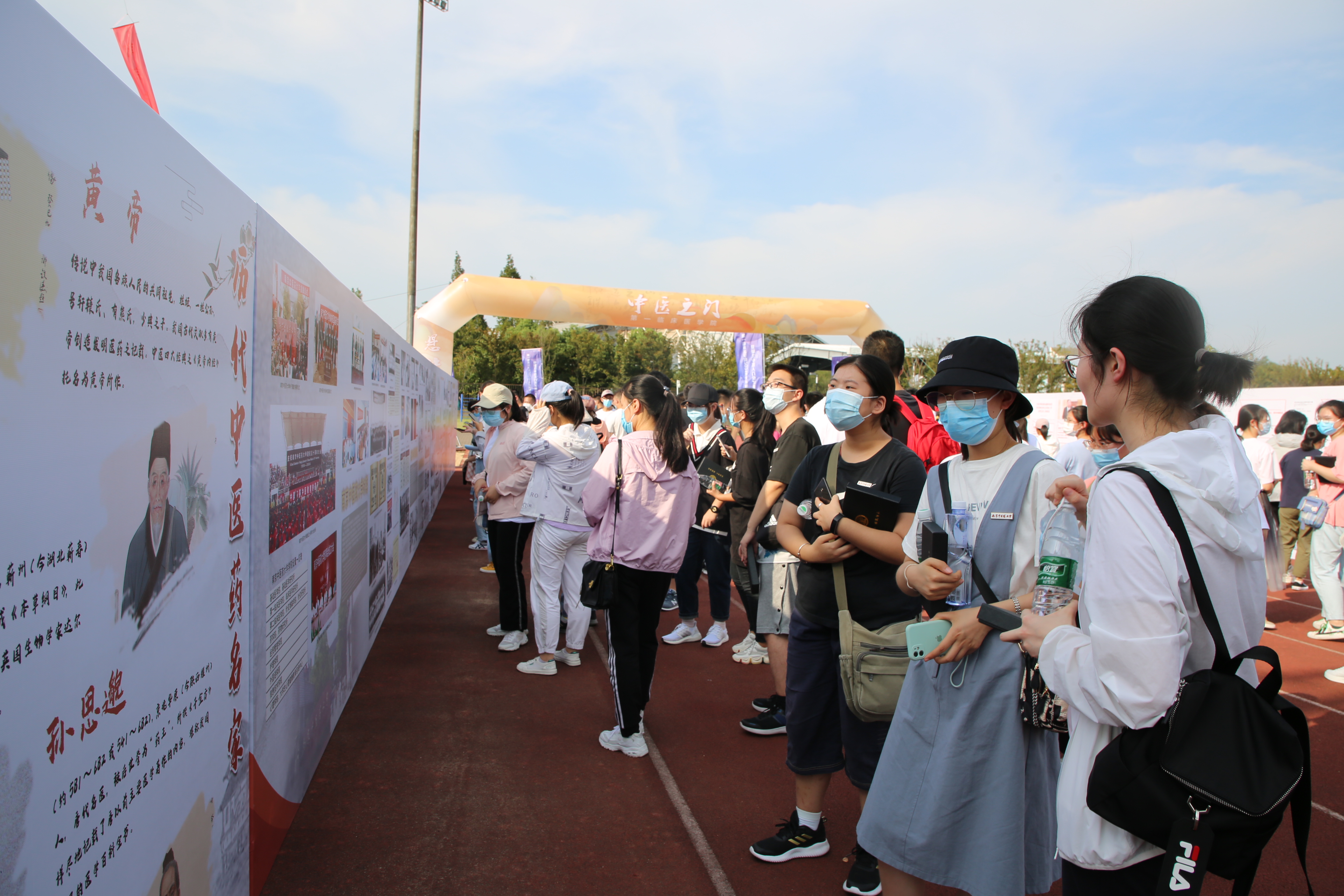 穿过中医之门,迎接新生的是中医文化长廊,长廊展示了 “校史专栏、习近平与中医药、历代中医药名家、江苏中医药抗疫”四个主题板块。源远流长的中医文化,潜移默化地激发、点燃着同学们对中医的热情和信念。
