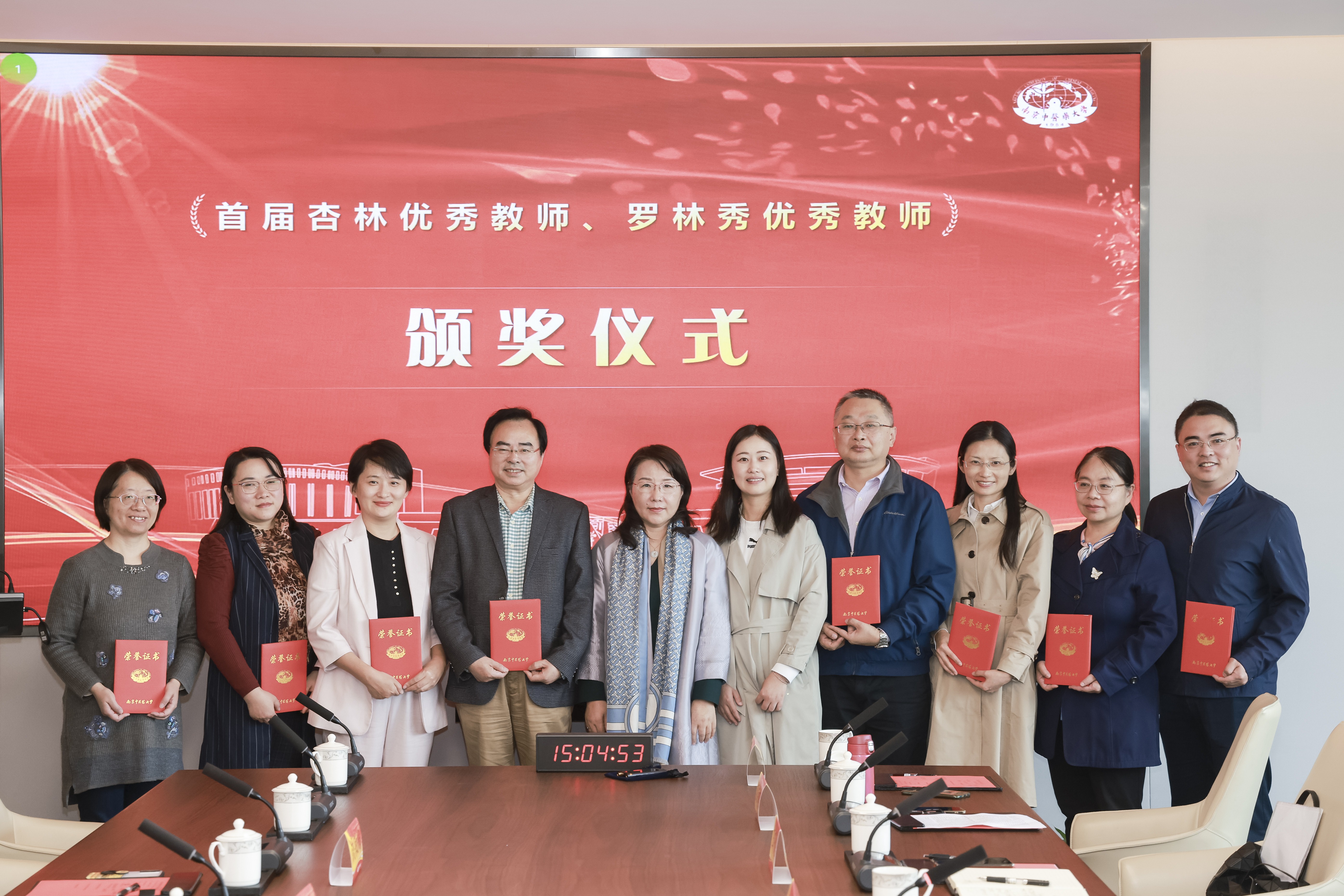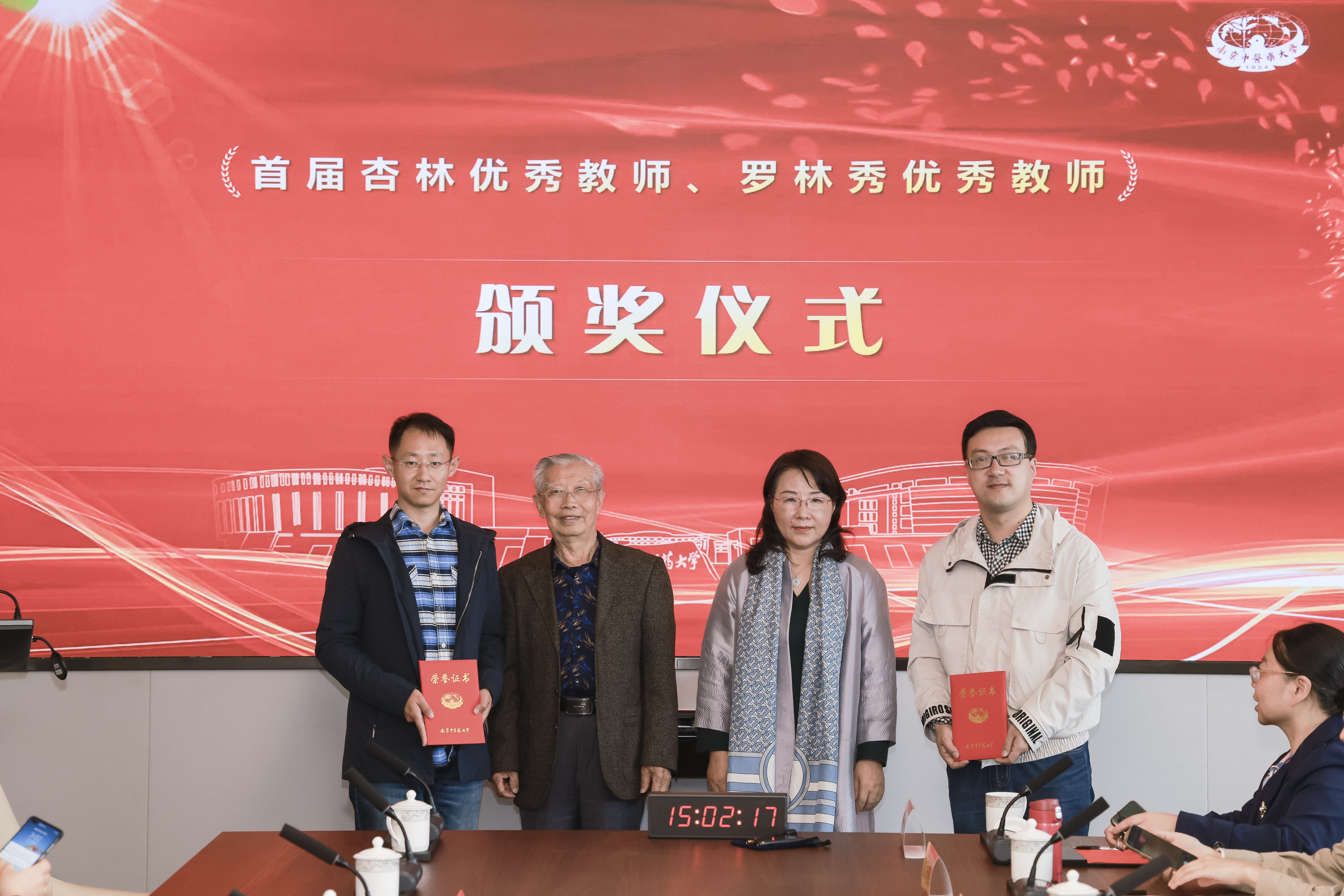 与会嘉宾领导为首届罗林秀优秀教师获得者代表颁奖