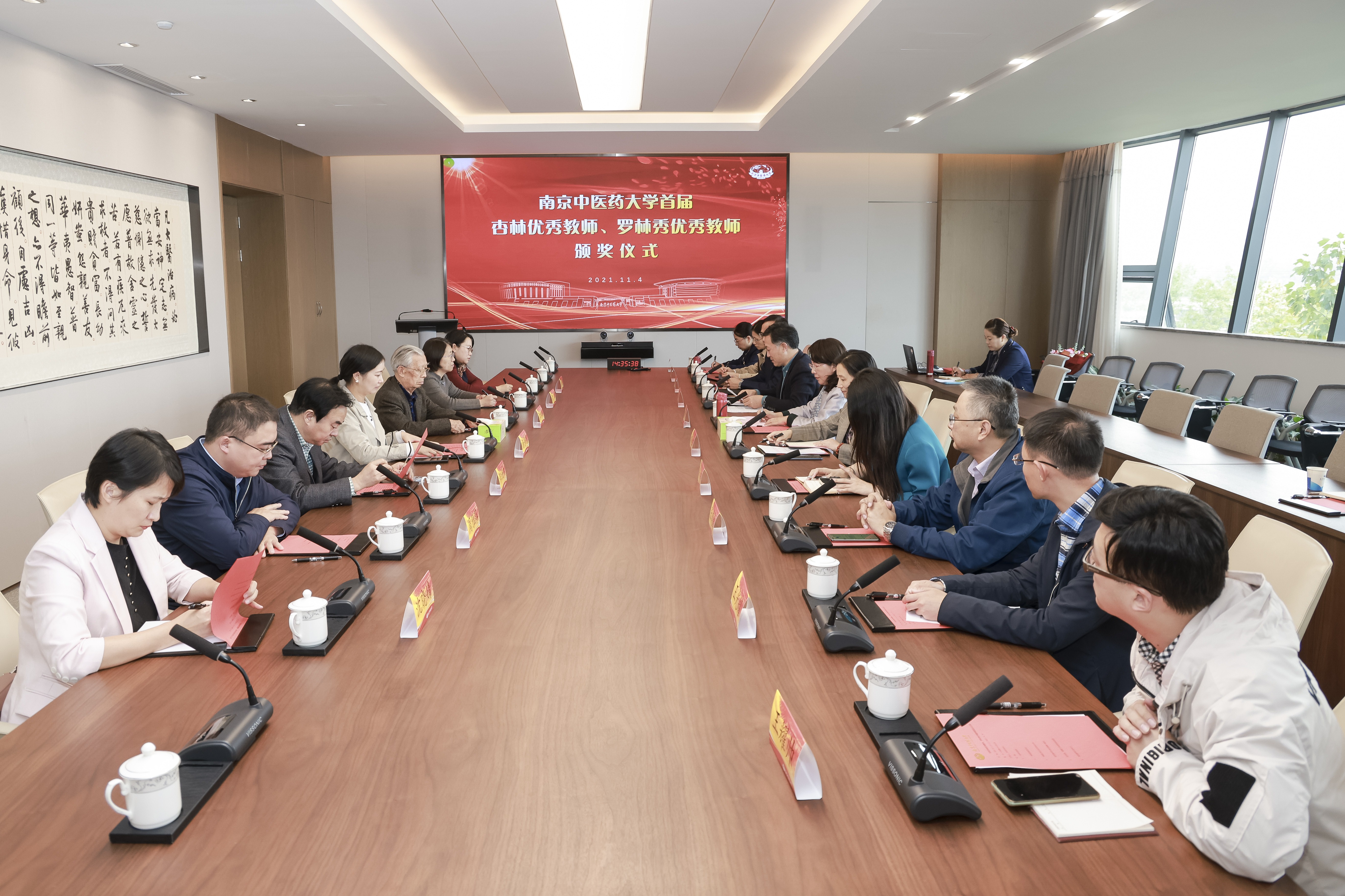 11月4日下午,南京中医药大学首届杏林优秀教师、罗林秀优秀教师颁奖仪式在行政楼316会议室举行。江苏省军区南京第二十一干休所离休教授李树培、南京上元堂医药股份有限公司党支部书记杨静丽作为捐赠方代表莅临颁奖仪式。南京中医药大学党委常委、副校长徐桂华出席颁奖仪式,教务处、发展规划处、社会资源处负责人以及获奖教师代表参加颁奖仪式。颁奖仪式由教务处处长狄留庆主持。