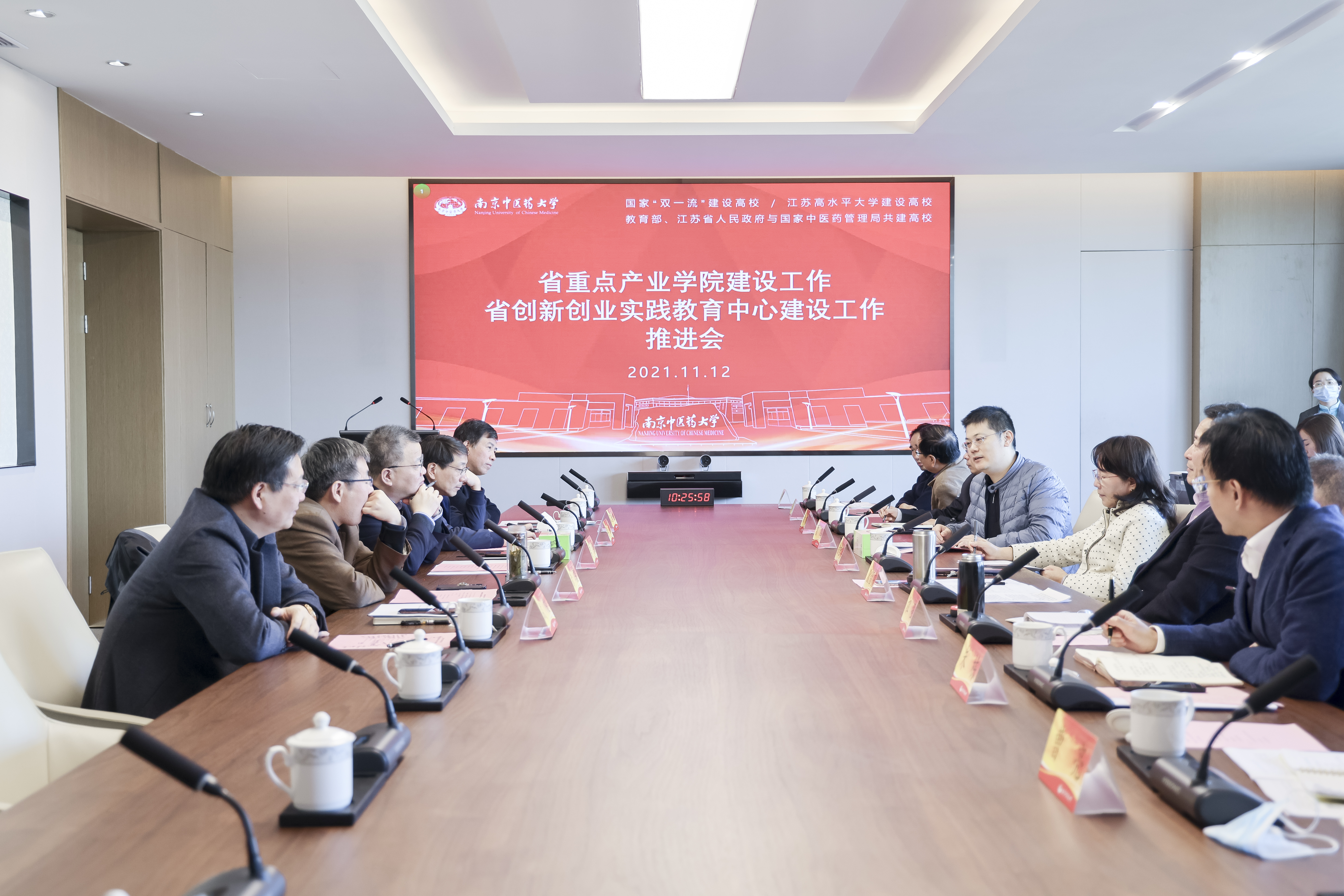 11月12日上午,我校在仙林校区行政楼316会议室召开省重点产业学院建设、省创新创业实践教育中心建设推进会。会议邀请南京林业大学副校长勇强教授、南京理工大学校长助理李强教授、南京大学本科生院常务副院长徐骏教授、南京航空航天大学教务处处长孔垂谦教授、南京中山制药有限公司董事长成俊教授对省重点产业学院建设方案、省创新创业实践教育中心建设方案进行指导。校党委常委、副校长徐桂华出席会议,教务处及药学院主要负责人、省重点产业学院团队成员参加会议。会议由教务处处长狄留庆主持。