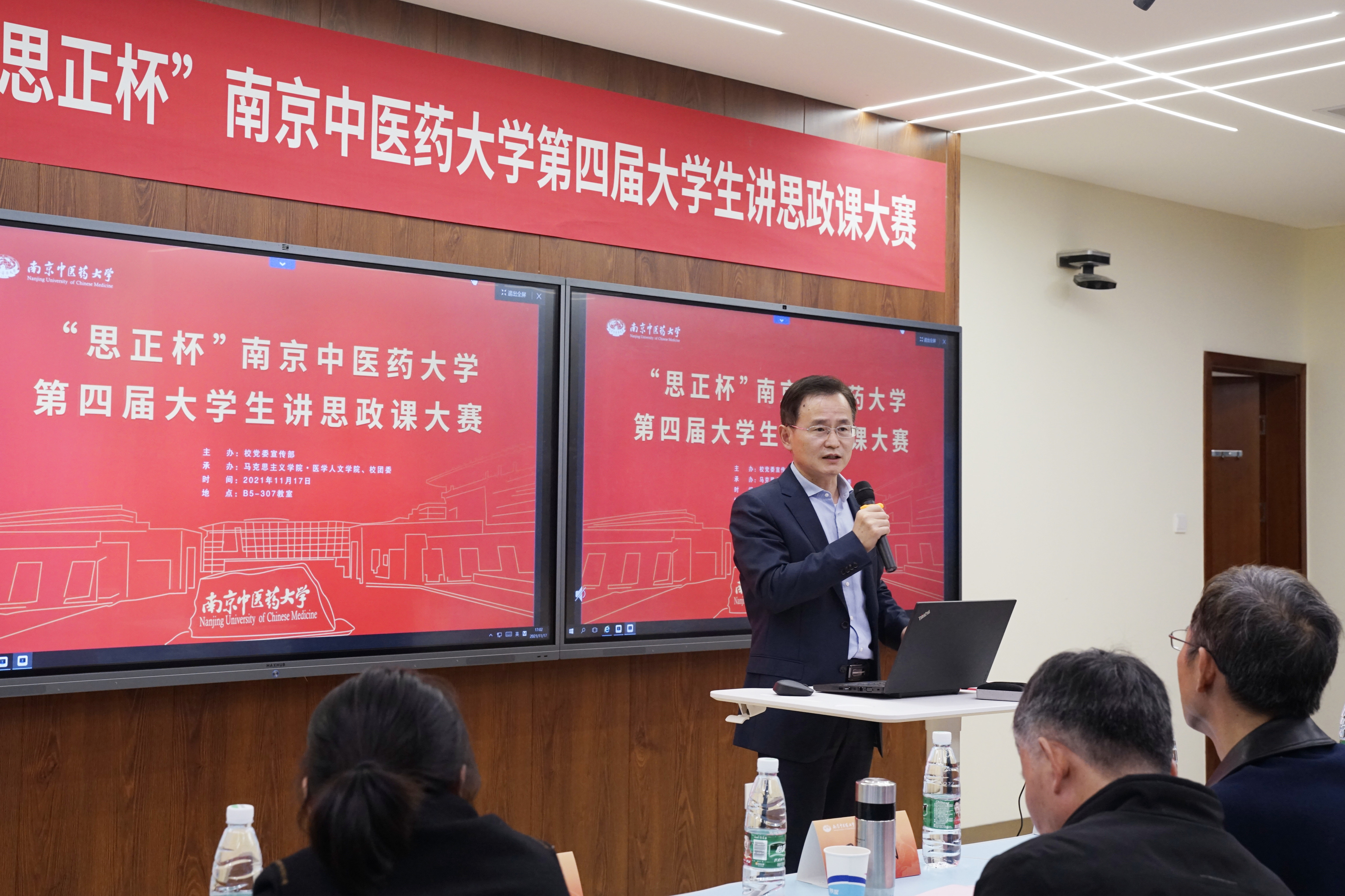 11月17日下午,由党委宣传部主办,马克思主义学院、校团委承办的“思正杯”南京中医药大学第四届大学生讲思政课大赛在B5-307举行。校党委常委、宣传部部长刘晓,教务处、学工处、团委负责同志以及马克思主义学院全体领导班子成员、各教研室主任出席。比赛由马克思主义学院副院长张艳萍主持。
