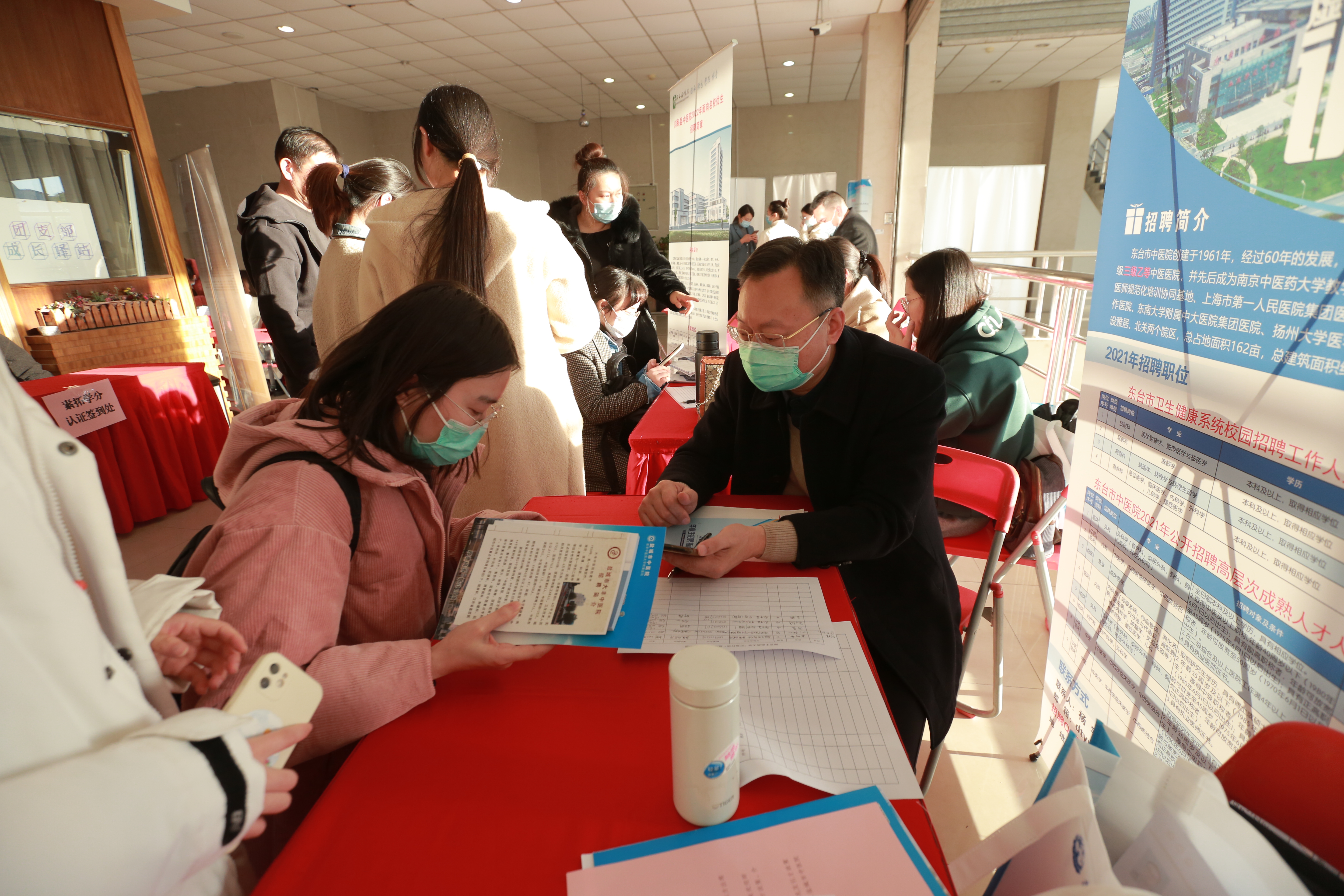 宣讲推介结束后,盐城市中医院、滨海县人民医院等14家医疗卫生单位在大学生活动中心二楼接受我校毕业生的现场咨询,并进行应聘报名预登记。各单位提供了各类岗位300余个,现场学生反响热烈,积极投递简历、询问政策,以期找到心仪的工作。