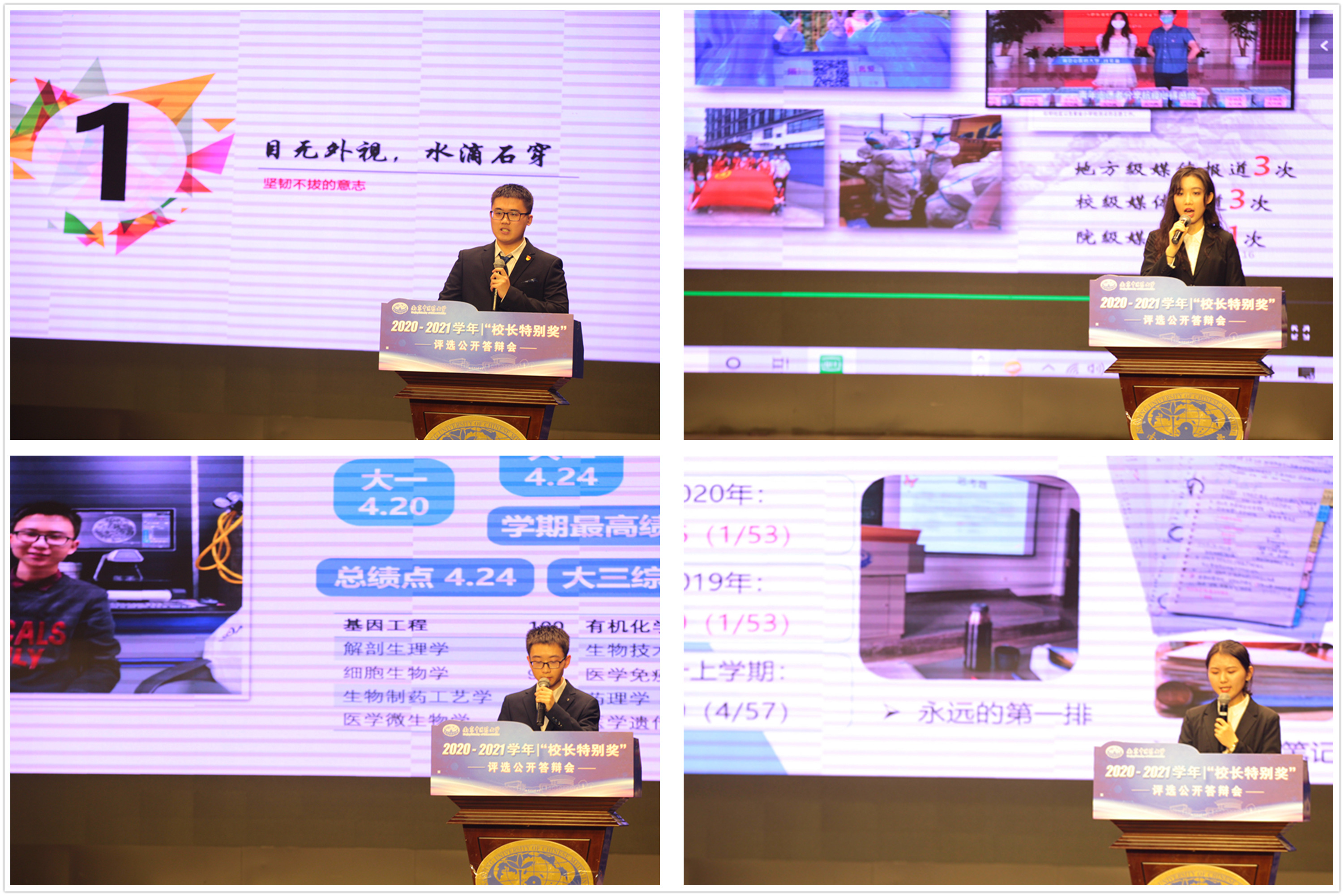 经过激烈的角逐,最终评审团一致推荐中医学院•中西医结合学院时艺榕等10名同学为校长特别奖人选,药学院刘嘉庆等10名同学为校长特别奖提名奖人选。