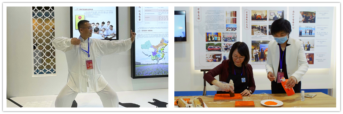 我校教师在中医文化专场现场展示传统功法和雕版印刷