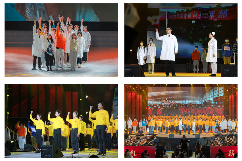 在第三篇章《学·根植华夏,我以青春付家国》中,以《赤心如日》《心坚如铁》《情深如海》《恩重如山》《大爱如歌》五个“情景相册”诠释了大医精诚,扶危渡厄,普救含灵的精神。从唐山大地震到苏北流行性出血热,从非典到新冠疫情,南中医人奔赴一个又一个“战场”,与时间赛跑,与病毒抗争,只为守护人民健康。南中医人面对一次次大考,在抗疫救灾的答卷上写下浓墨重彩回答,用精诚之志、血肉之躯,践行铸就守护人民健康的钢铁长城。