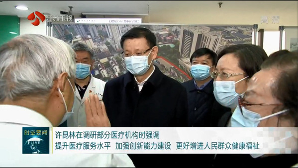 2月9日,江苏省省长许昆林赴我校附属医院(江苏省中医院)等南京部分医疗机构调研。他强调,要深入贯彻习近平总书记关于健康中国的重要论述,进一步提升医疗服务水平,加强创新能力建设,不断满足人民群众日益增长的医疗健康需求,推动我省卫生健康事业和生物医药产业高质量发展。