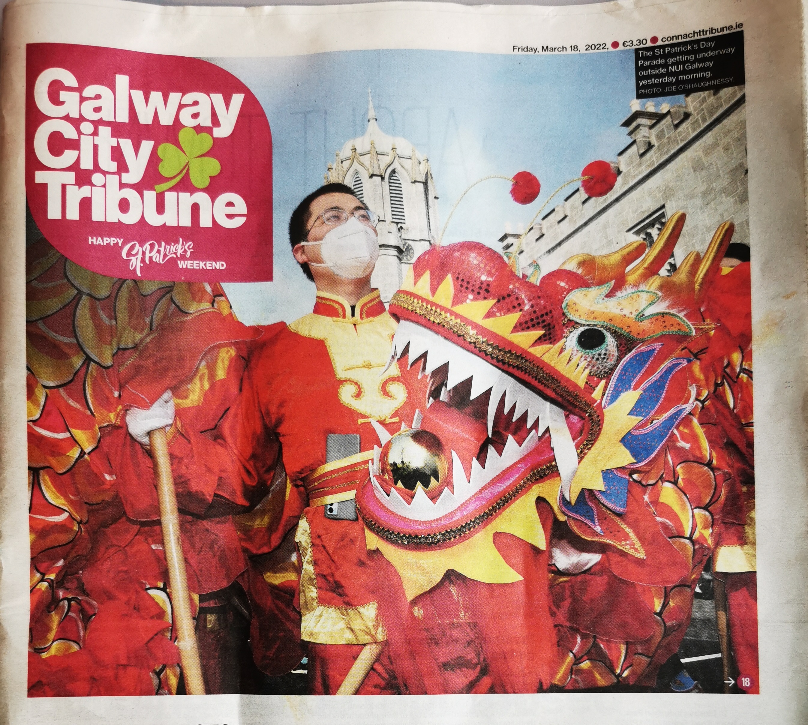 当地报纸Galway City Tribune头版报道高威孔院参加高威市国庆日庆典情况